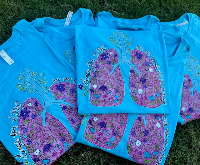 COTA for Lungs for Lilly is a meaningful fundraiser supporting COTA in honor of Lilly Lay, a cherished student at Beebe School District. having received transplant center approval, Lilly is preparing for a double lung transplant. Through the sale of "Lungs for Lily" t-shirts- available in Aqua Blue LAT Brand or Royal Purple Bella Canvas featuring this unique and beautiful lung design-we aim to help COTA ease the financial strain on Lilly and her family during this difficult time by assisting with transplant-related expenses. Your support of COTA for Lungs for Lilly is vital to Lily's recovery journey. Thank you for your order. For more information or to donate directly, please visit Cota.org/cotaforlungsforlilly